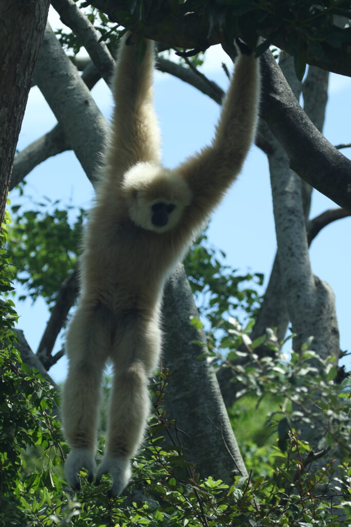 For species such as the white-handed gibbon, which are not comfortable with water, these moats act as an effective boundary, preventing the animals from approaching the visitor areas beyond a certain point.