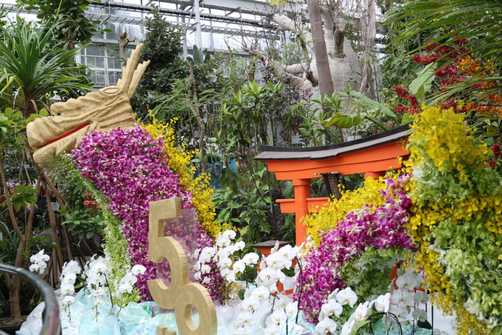 会場中央に設置されていたのは、蘭で構成された大きな竜の立体展示だった。