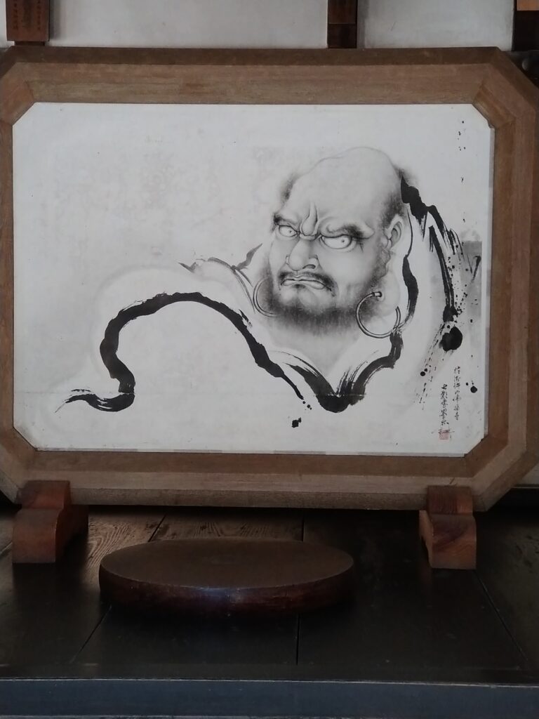 墨の勢いだけで描かれたような顔なのに、視線だけは異様に鋭い。