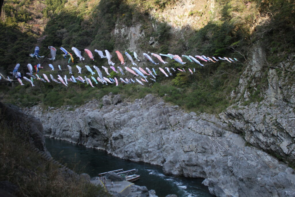 訪れた時期には、渓谷の上を泳ぐ鯉のぼりが印象的でした。