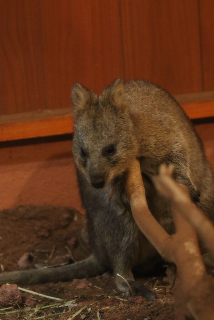 また生息地の西オーストラリアの乾燥した気候を再現するために室内展示が中心で、少し薄暗いのでシャッタースピードがあげられず、写真撮影がかなり困難でした。
