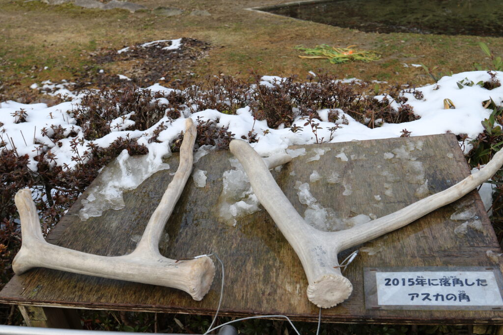 抜け落ちたツノが展示されているのですが、けっこうずっしりとした重みを感じます。