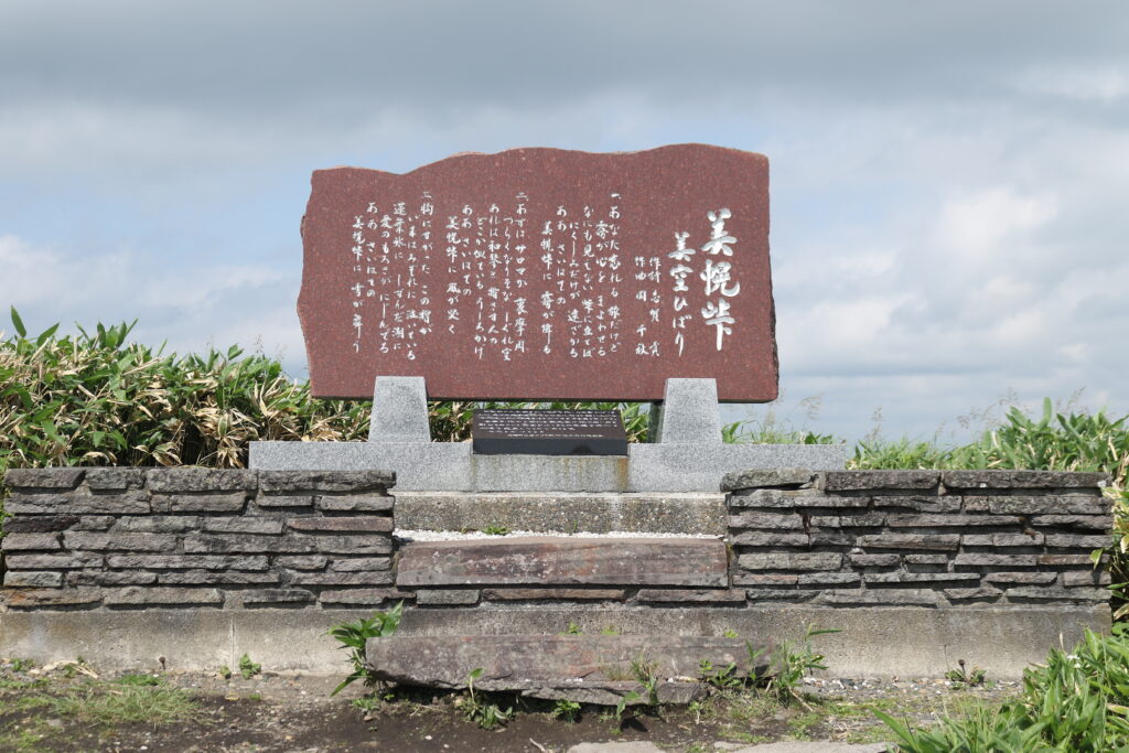 展望地に立つ標柱や記念碑には、変わらない名前が刻まれている。