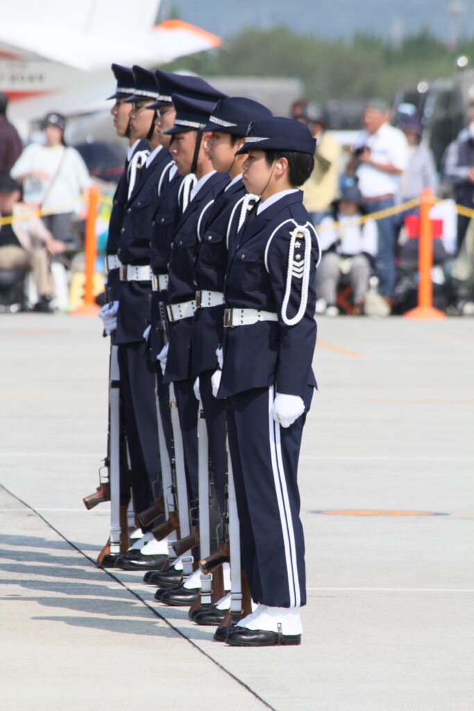 さて、このファンシードリルは40名程度の行進隊員と20名程度のブラスバンド隊員からなっていて、おおむね入隊から2年程度の階級は空士長から選抜されることになる。