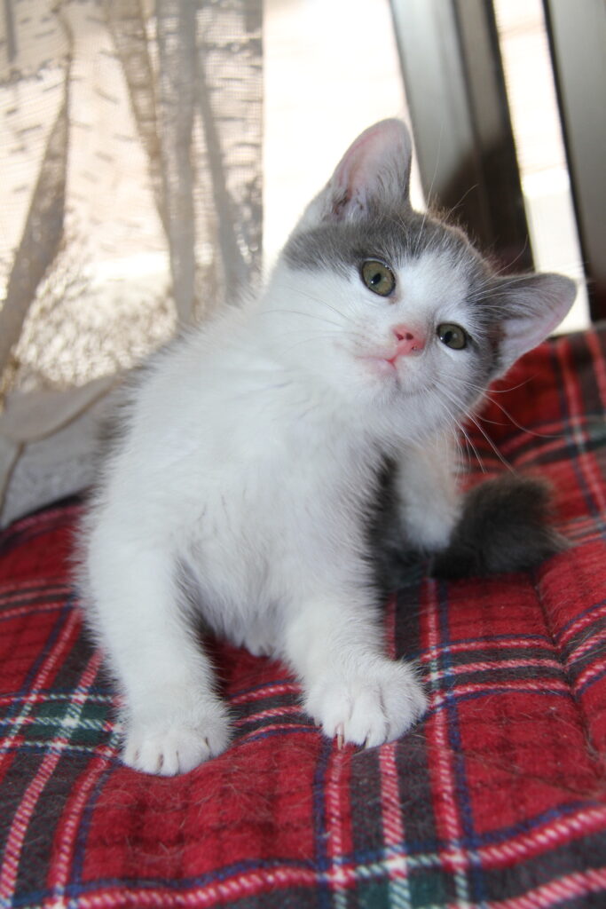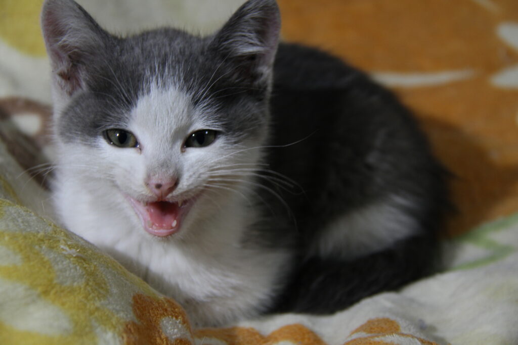 マルはグレーと白の毛色の、生後約3か月の子猫。