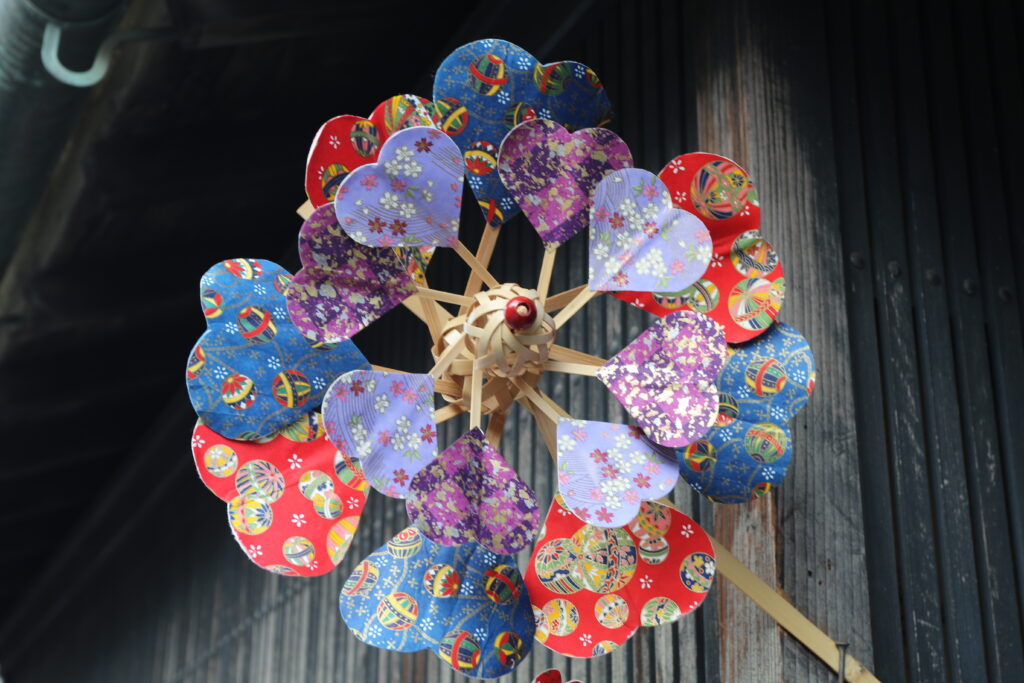 These pinwheels reflect a sense of playfulness and seasonal joy, often seen in festivals or as gentle decorations outside homes.