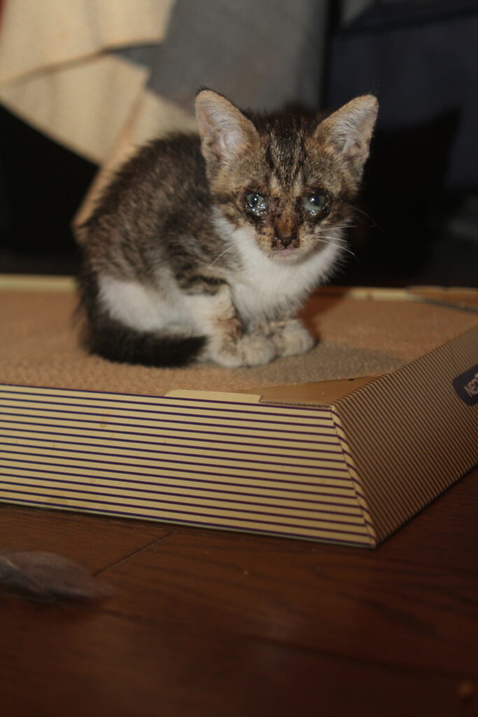 She was very weak and suffering from a serious cat cold.