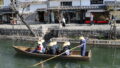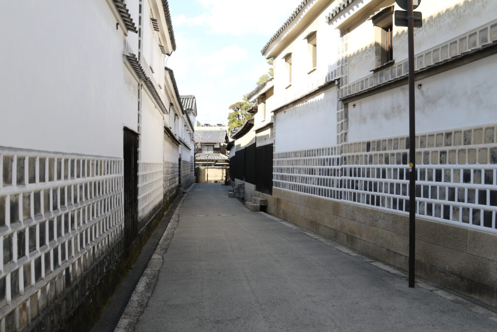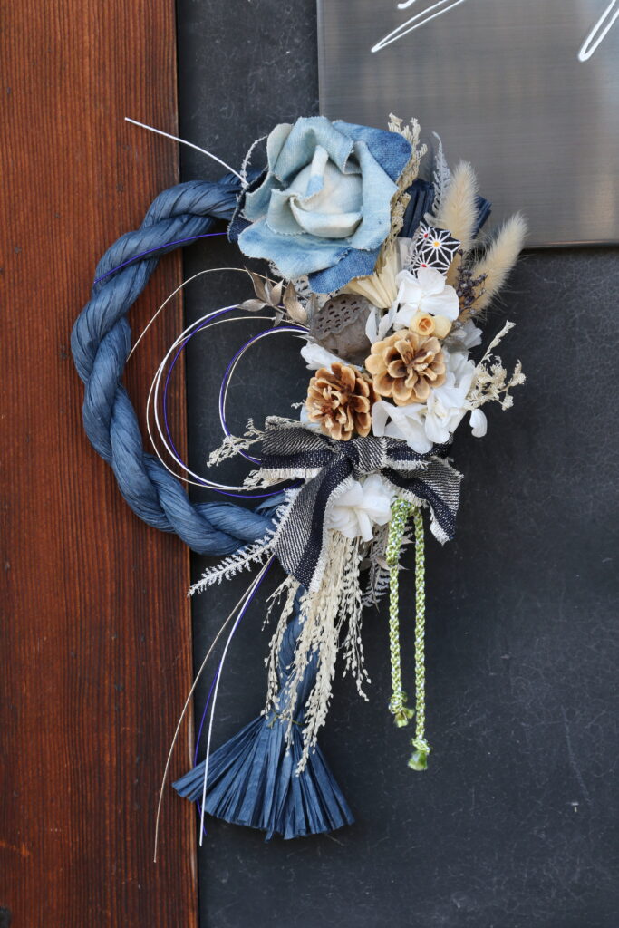 白壁や木の街並みの中に、ふとインディゴの色が現れる。