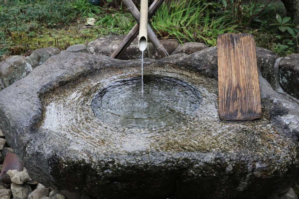 Water gently flowing from bamboo spouts reminds visitors that sake begins not in the bottle, but with nature itself.