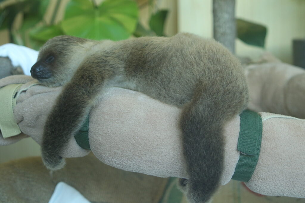獣医さんや飼育員さんに大切に育ててもらったフタユビナマケモノの赤ちゃん。