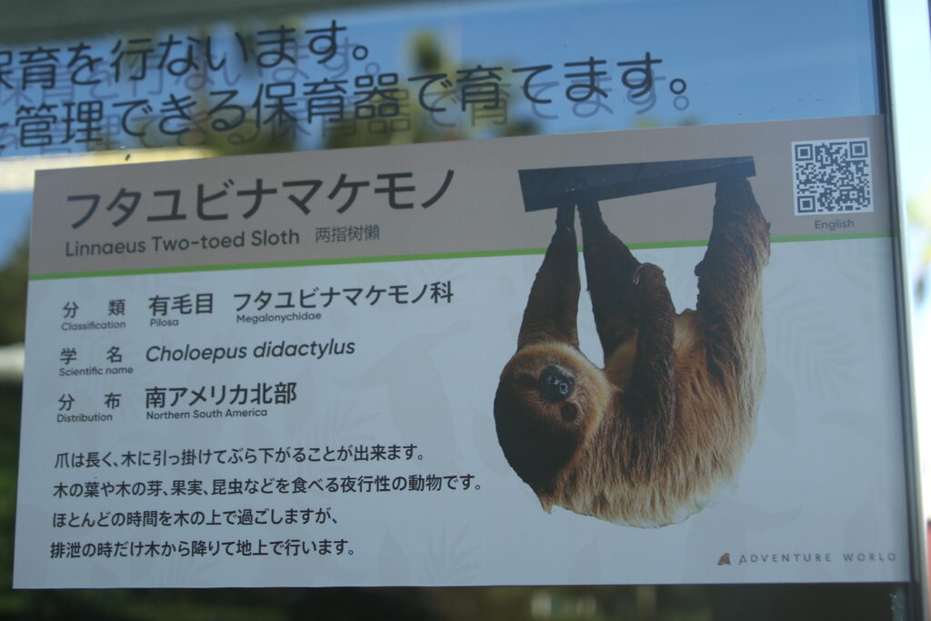 Interestingly, the three-toed sloth, which has three fingers, cannot be seen in Japan.