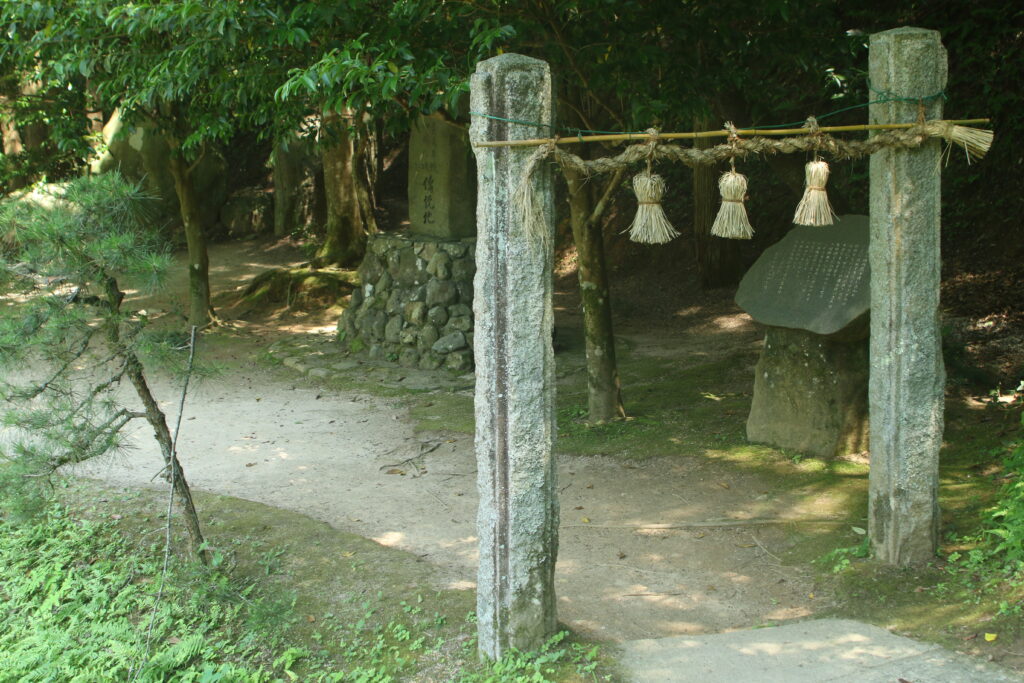 この写真に写る注連縄と石柱は、